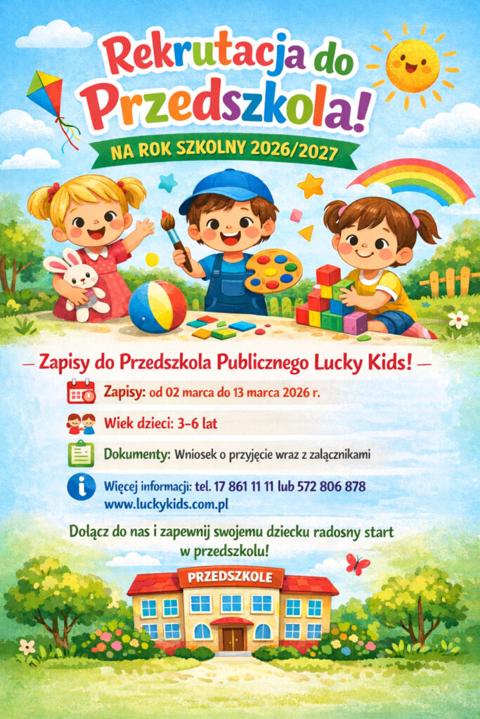 Z radością informujemy, że od 02.03.2026r. rozpoczynamy rekrutację do naszego przedszkola na rok szkolny 2026/2027! Zapraszamy rodziców do zapoznania się z zasadami naboru oraz do składania wniosków w wyznaczonym terminie. Rekrutacja prowadzona jest osobno dla każdego z oddziałów przedszkola. Przypominamy, że przedszkole Publiczne Lucky Kids nie bierze udziału w rekrutacji elektronicznej. 📅 Terminy rekrutacji 👧🧒 […]