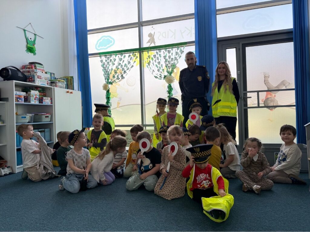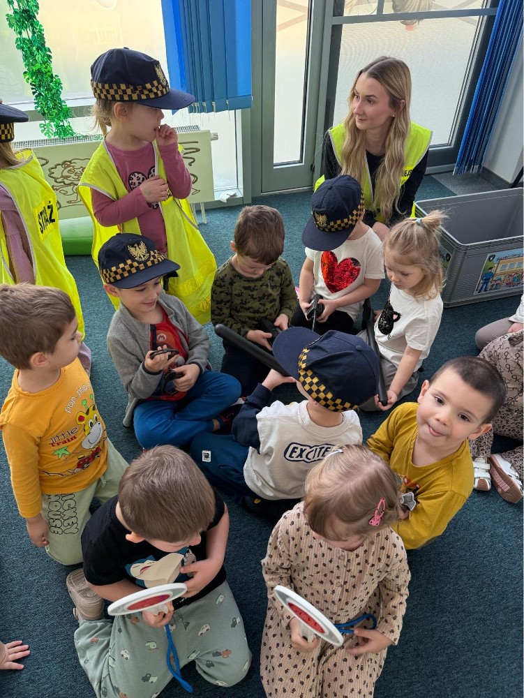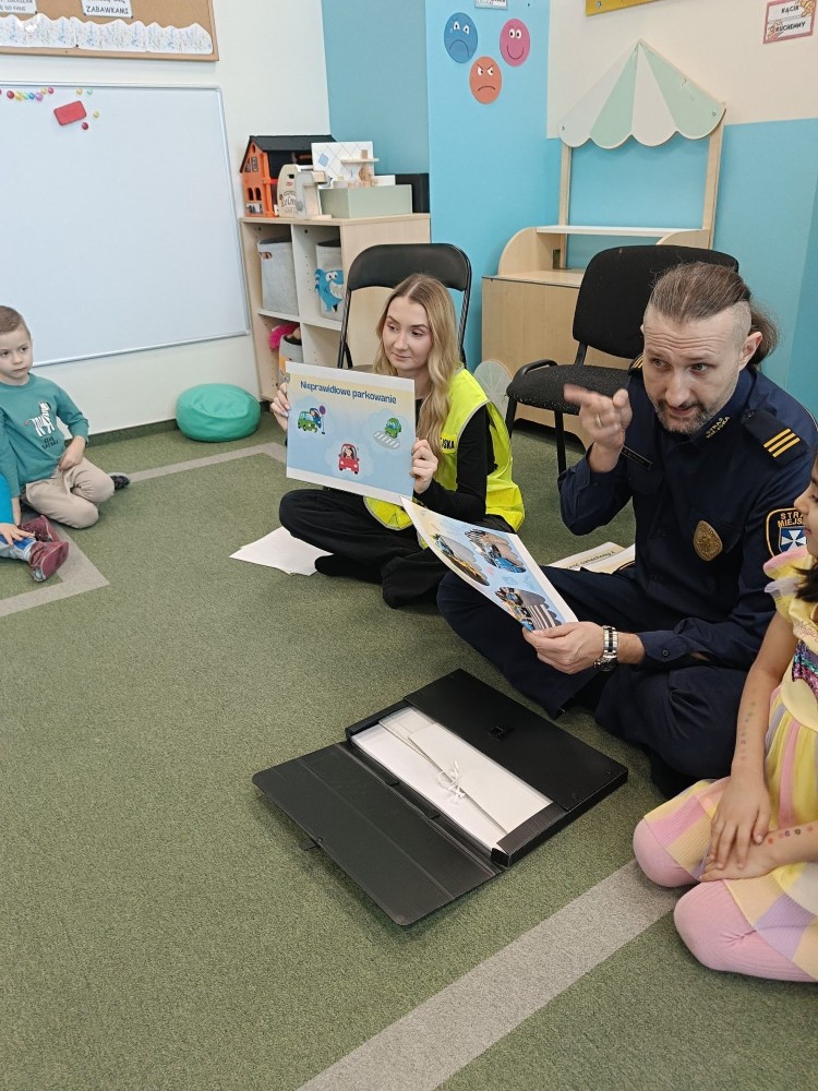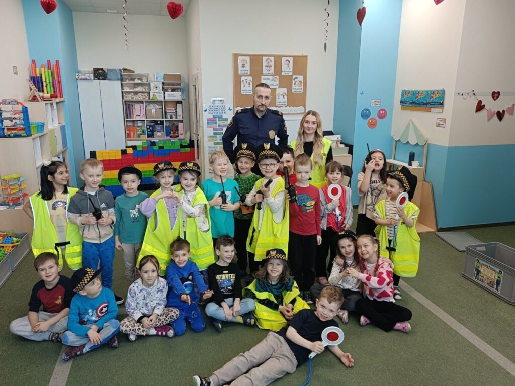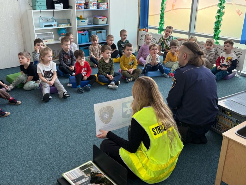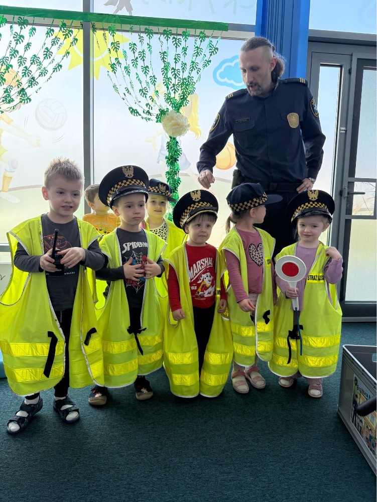 Spotkanie z funkcjonariuszami Straży Miejskiej było dla przedszkolaków nie tylko ciekawą przygodą, ale także ważną lekcją. Dzieci dowiedziały się, jak bezpiecznie poruszać się po drodze i jak reagować w różnych sytuacjach. Było dużo śmiechu, ciekawych pytań i ważnych rozmów.