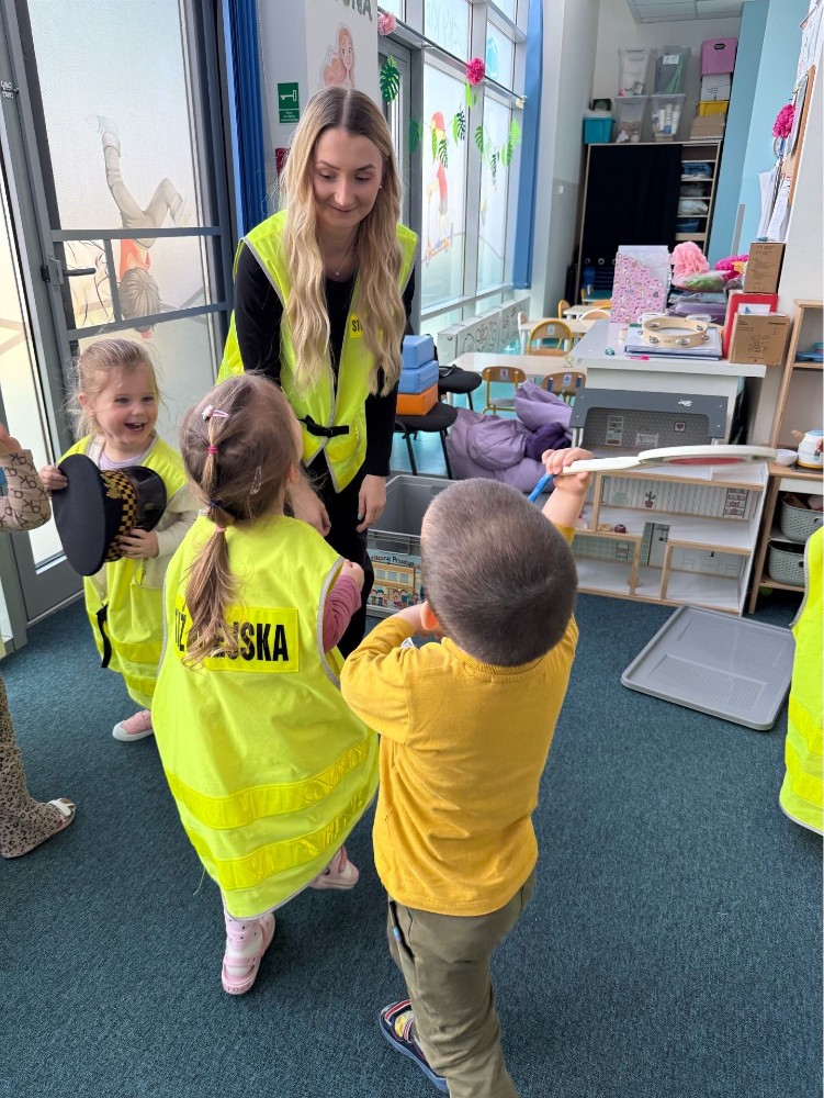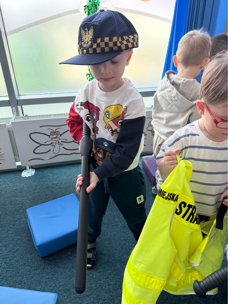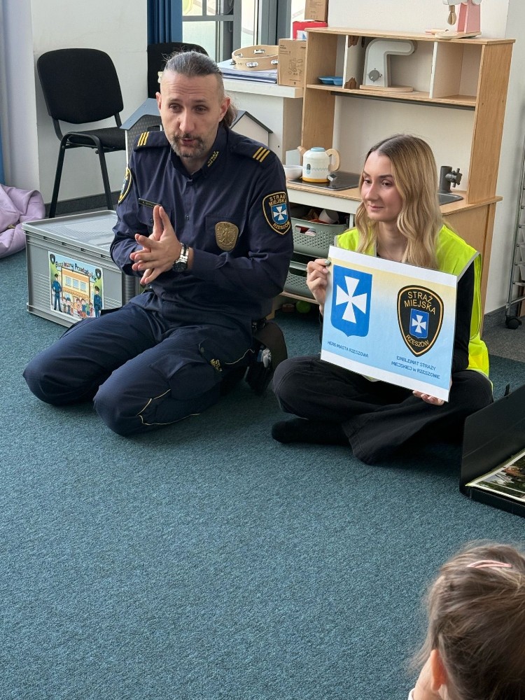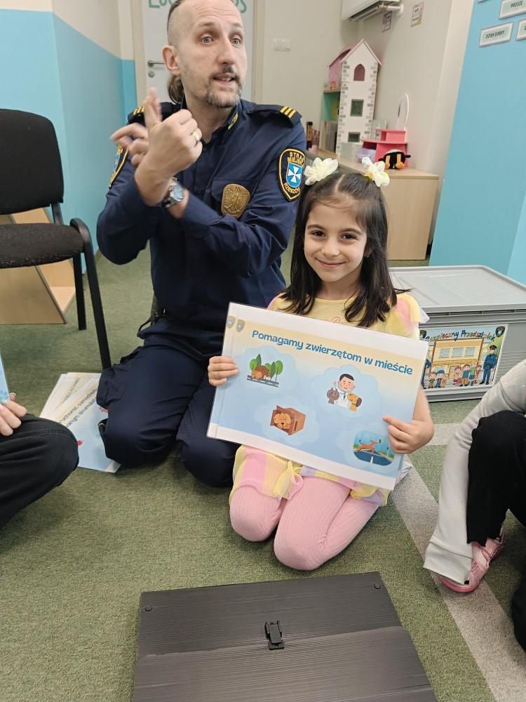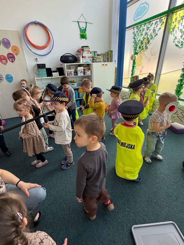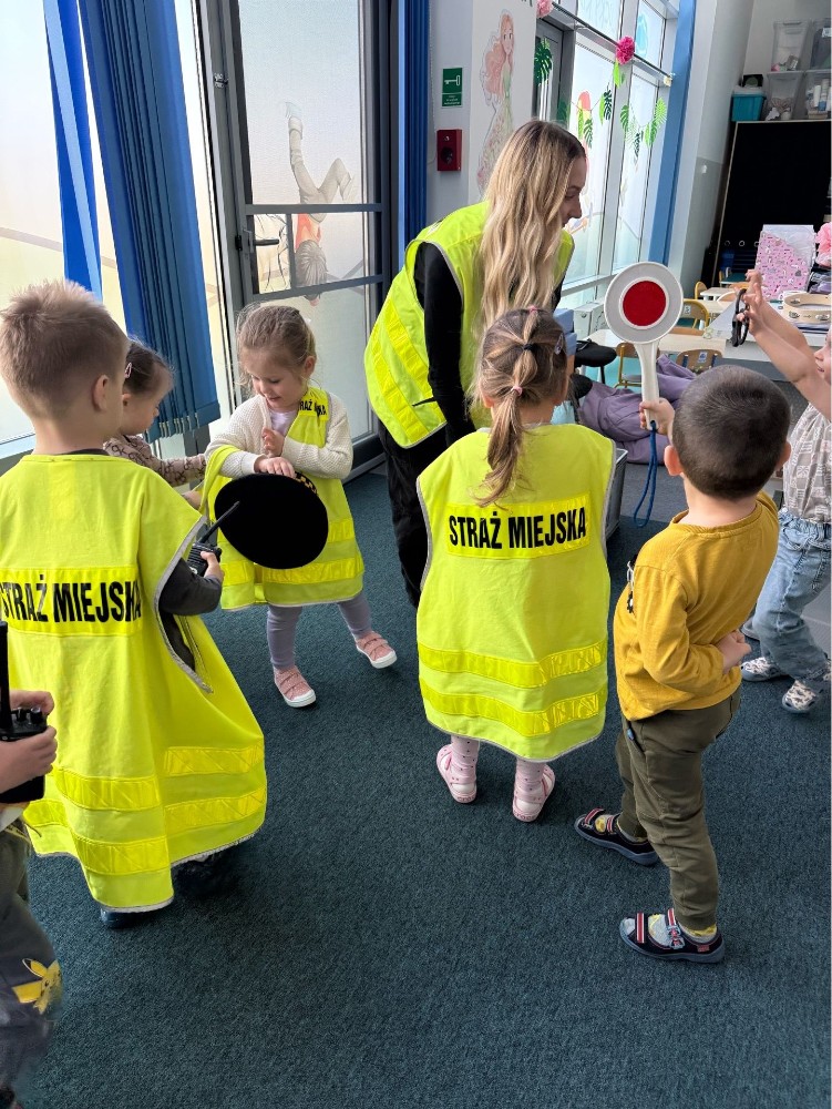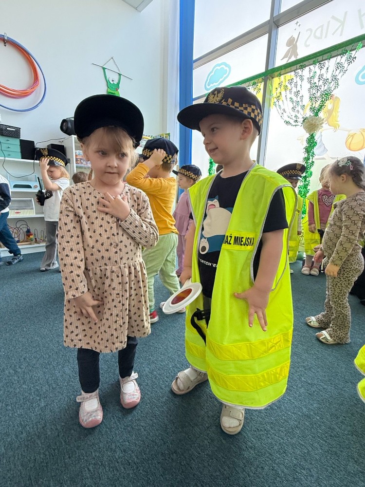 Spotkanie z funkcjonariuszami Straży Miejskiej było dla przedszkolaków nie tylko ciekawą przygodą, ale także ważną lekcją. Dzieci dowiedziały się, jak bezpiecznie poruszać się po drodze i jak reagować w różnych sytuacjach. Było dużo śmiechu, ciekawych pytań i ważnych rozmów.
