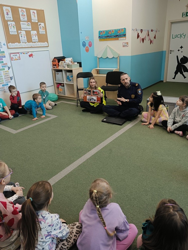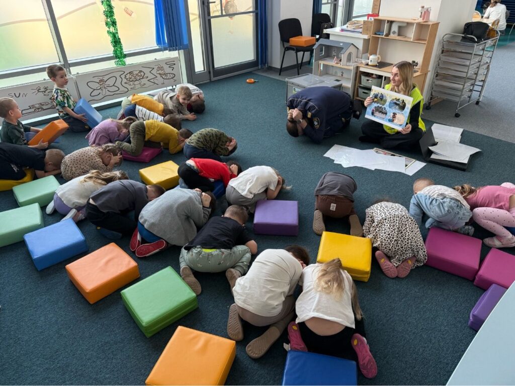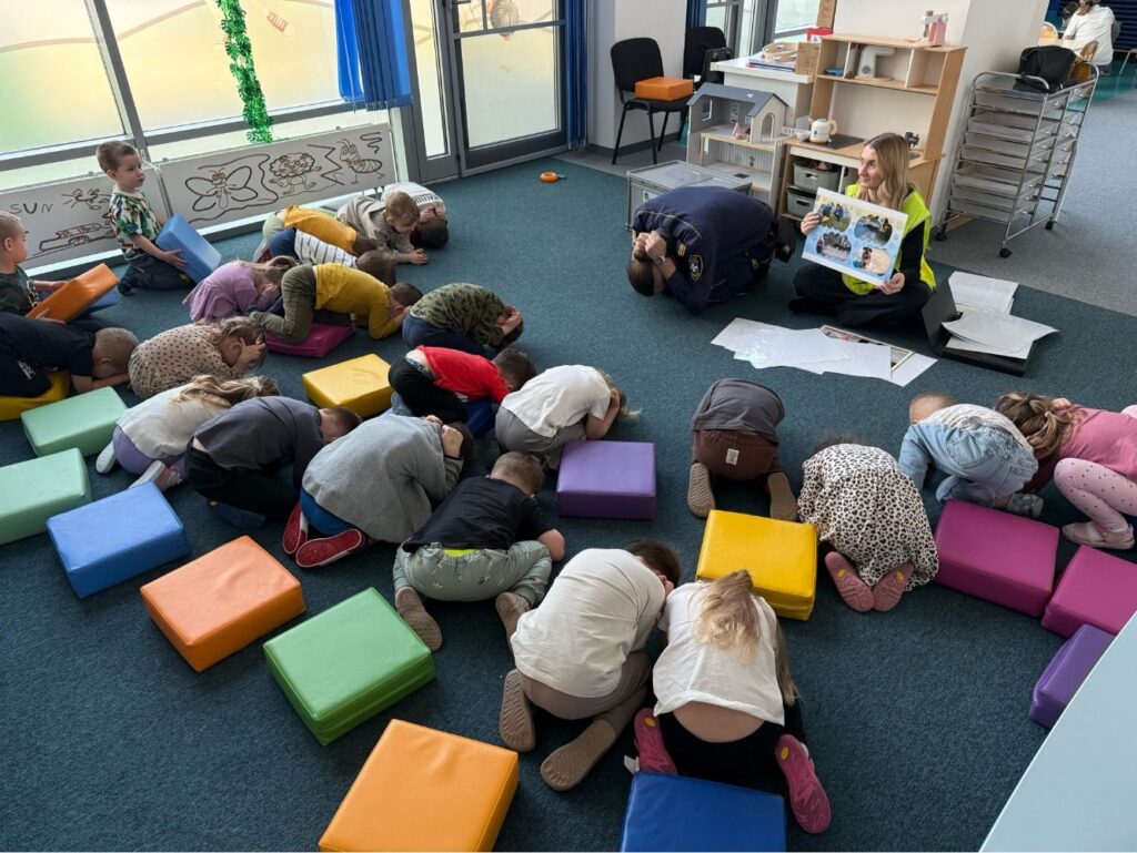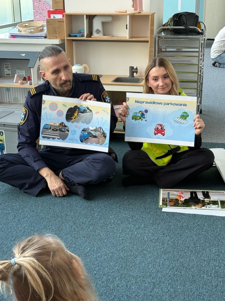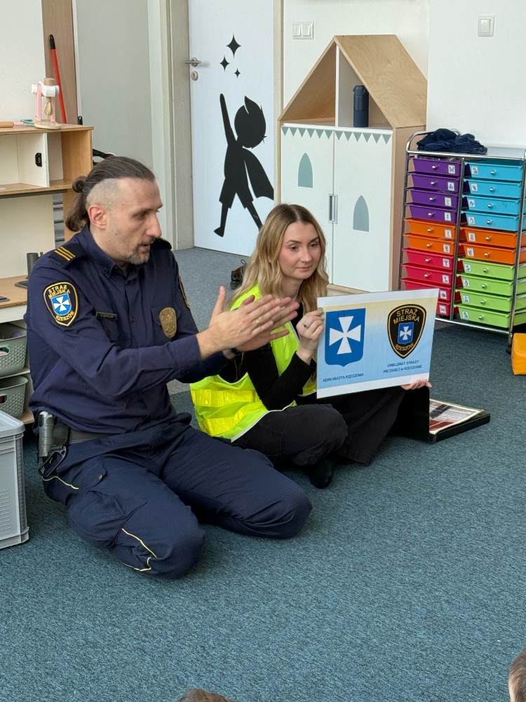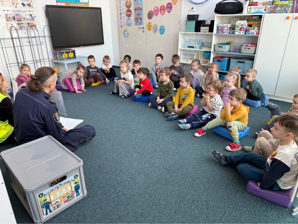 Spotkanie z funkcjonariuszami Straży Miejskiej było dla przedszkolaków nie tylko ciekawą przygodą, ale także ważną lekcją. Dzieci dowiedziały się, jak bezpiecznie poruszać się po drodze i jak reagować w różnych sytuacjach. Było dużo śmiechu, ciekawych pytań i ważnych rozmów.